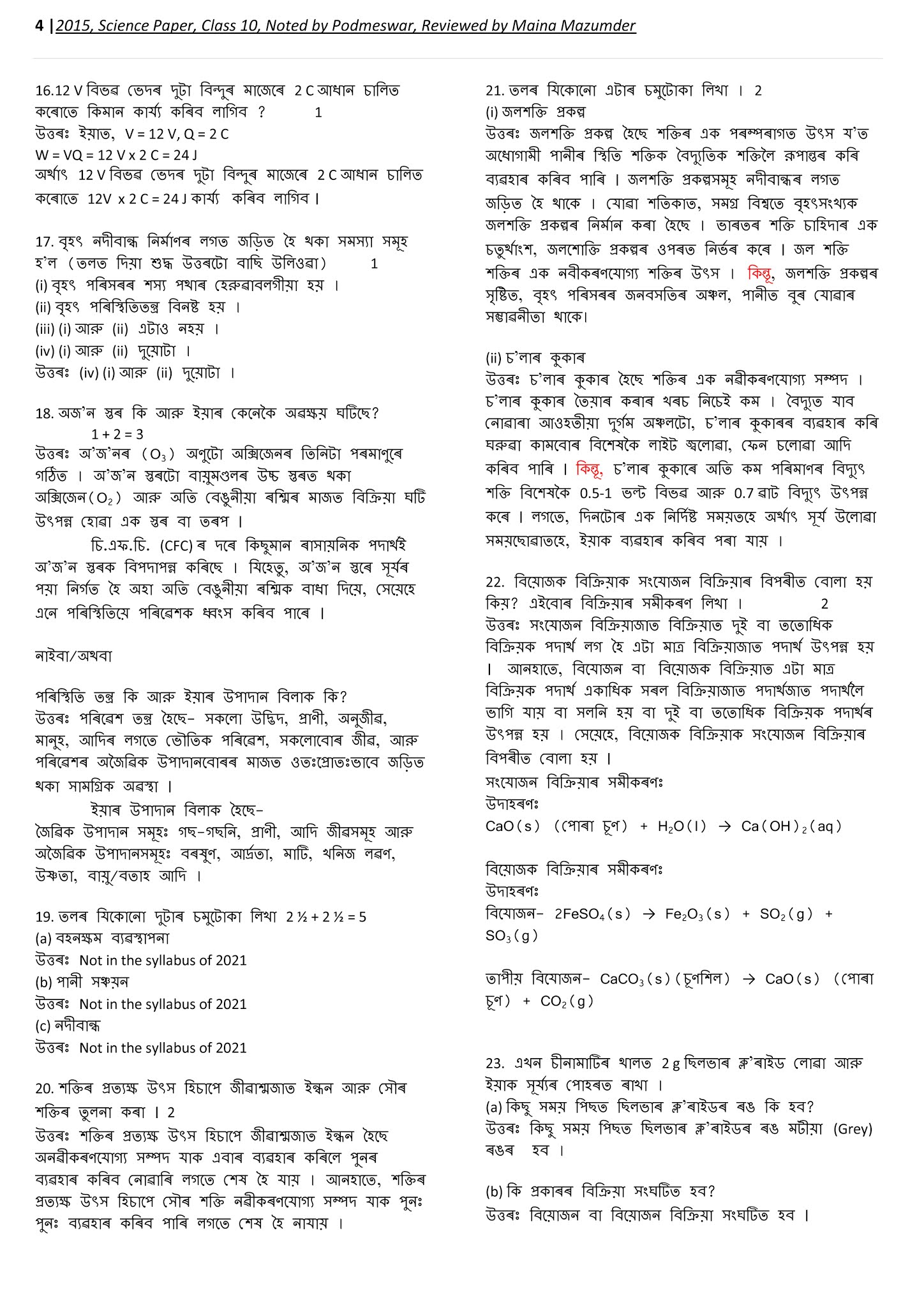2015, SCIENCE PAPER, CLASS 10, SEBA, NOTED BY PODMESWAR AND REVIEWD BY MAINA MAZUMDER